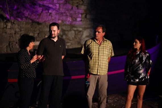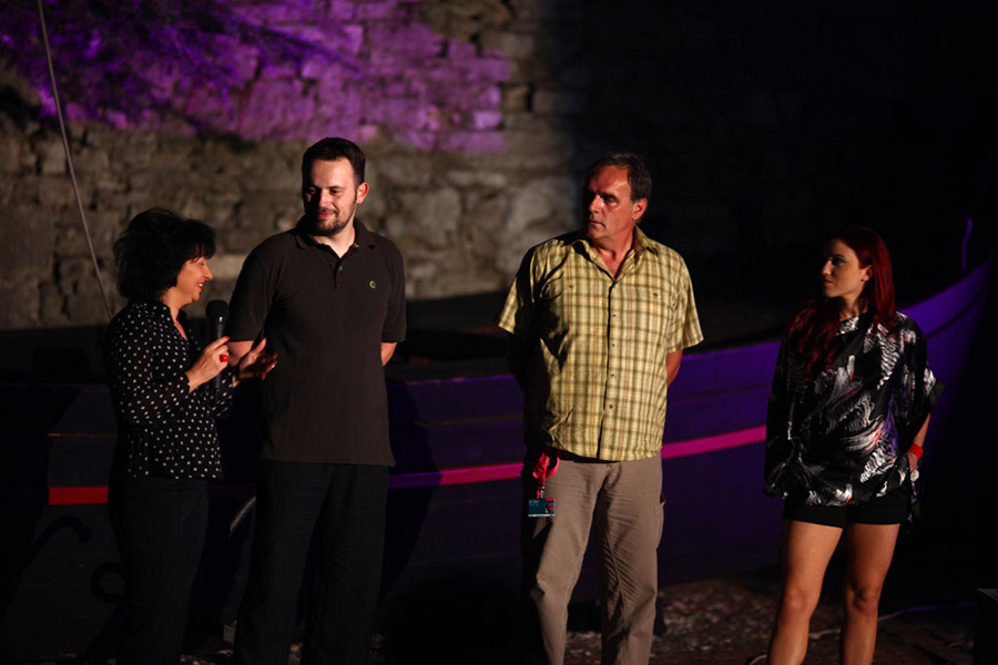 Na predstavljanju filma uo?i projekcije na Kaštelu: producentica filma Eva Rohrman, glasnogovornik Festivala Hrvoje Pukšec, glumac Slobodan ?usti? i glumica Maja Martina Merljak